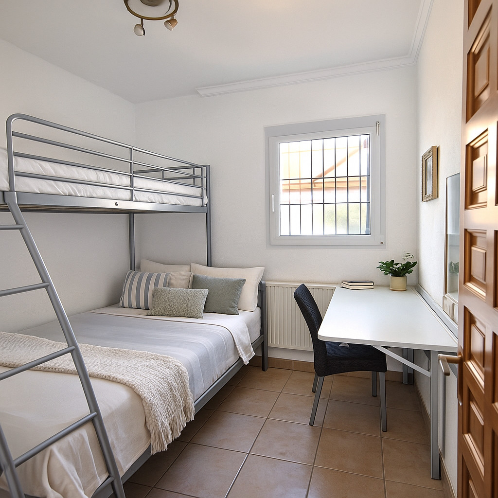 Aire acondicionado en la sala de estar y en 3 de los 4 dormitorios
